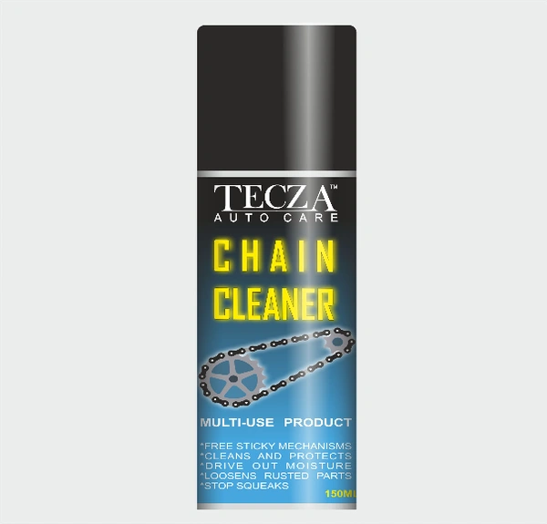 - The Tecza Chain Cleaner and degreaser foaming action clings to bike surfaces to deeply penetrate and quickly remove stubborn grease and grime from bike chains and the rest of the drivetrain.